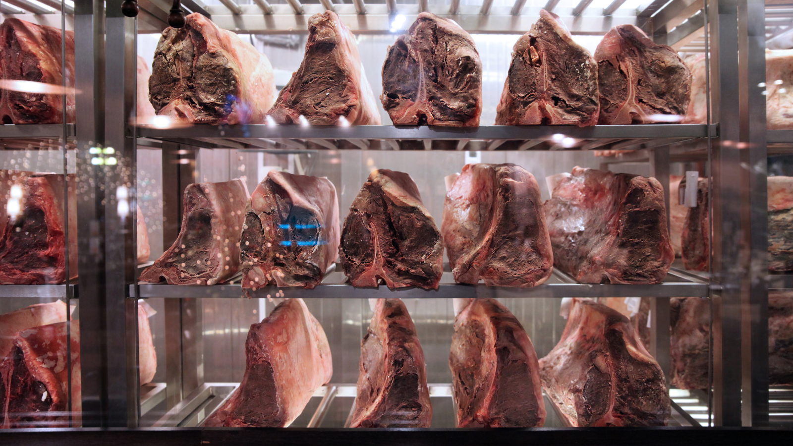 Meat ageing is a process during which microbes and enzymes act upon the meat to break down the connective tissue, thereby tenderising the meat and giving it a richer flavour. This can be done through two main methods: wet ageing and dry ageing. Wet ageing is used for beef, pork and lamb that is stored and refrigerated in a vacuum package, while dry aged beef is refrigerated without packaging which results in a dry surface that is cut off before preparation.